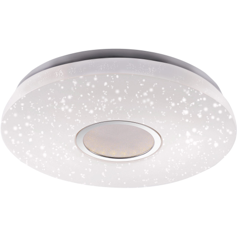 A kerek Jonas LED-es mennyezeti lámpa lenyűgöz a csillagos égbolt megjelenésével. Acél és műanyag kombinációjából készült, és az üvegbúrában lévő sok kis áttetsző pontnak köszönhetően úgy tűnik, mintha kis csillagok ragyognának. A lámpa egy fixen beépített 40 W-os LED-izzót tartalmaz. A fényforrás körülbelül 2942 lumen fényt bocsát ki, és lehetősége van a fény színének meleg fehérről (3000 Kelvin) nappali fehérre (5000 Kelvin) történő módosít