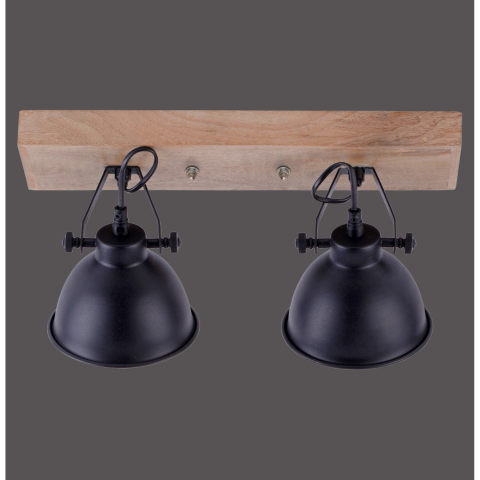 A 2 izzós fali- és mennyezeti lámpa lenyűgöz igényes vintage megjelenésével. A fa és a fekete vas kombinációja különleges bájt kölcsönöz a lámpának. A lámpa nem tartalmaz izzót. A lámpát két E14-es, legfeljebb 40 wattos izzóval szerelheti fel. Kombinálja a lámpát egy tetszés szerinti izzóval. A lámpa egyes spotjai forgathatók és elfordíthatók, így tetszés szerint állíthatók. Rusztikus megjelenésével a lámpa garantáltan igazi szemet gyönyörködtető l