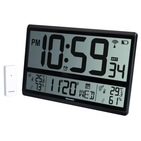 Discovery Report WA50 időjárás-állomás Többfunkciós otthoni időjárás-állomás távérzékelővel A Discovery Report WA50 stílusos és szemet gyönyörködtető készülék csodálatos ajándék lehet. Keskeny vázformájának köszönhetően kialakítása kimondottan könnyed és elegáns, funkcionalitásában pedig ugyanolyan kiváló, mint analóg társai. Az időjárás-állomás hőmérsékletet és légköri nyomásszintet mér, megjeleníti az időt, a dátumot és a hét n