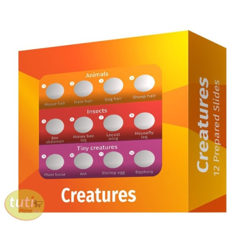 Levenhuk LabZZ C12 Élőlények – előkészített tárgylemez-készlet Alkalmazási terület: állattan A Levenhuk LabZZ előkészített tárgylemez-készlet eredeti kialakítású tárgylemezekben különböző mintákat tartalmaz. Szemléltető segédeszközként használhatók a növény-, az állat- és a rovartan területén. Ez igazi kincs a kíváncsi gyerekeknek! Csak rá kell tenni a mintát a tárgyasztalra és már vizsgálhatja is az egérszőrt, a légylábat, a vízibolhát és a