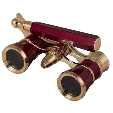 Levenhuk Broadway 325N színházi látcső (LED-lámpával ellátott piros lornyon) Szín: piros arannyal Levenhuk Broadway 325N termékcsalád – elegáns színházi lornyon LED-világítással. A teleszkópos fogantyú segítségével könnyedén állítható a magasság, így az eszköz maximális kényelmet nyújt. Mindegyik modellhez tartozik egy puha tárolótok és egy tisztítókendő az optikai elemekhez. A csomagolás színházi témájú külsőt kapott. A fémből készült, világo