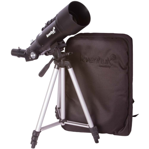 Levenhuk Skyline Travel 70 teleszkóp Refractor. Objektívlencse átmérője: 70 mm. Fókusztávolság: 400 mm A Levenhuk Skyline Travel 70 teleszkóp egy alt-azimut állványra szerelt refraktor, amely kiválóan alkalmas csillagászati és földi megfigyelésekhez. Ezzel a modellel tanulmányozhatók a Hold kráterei, a jégsapka a Marson, a Szaturnusz gyűrűi, a Vénusz fázisai, valamint a fényes csillagok és csillagködök. Szükség szerint figyelőtávcsőként is használható, ekko