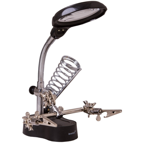 Levenhuk Zeno Desk D3 nagyítóNagyítás: 3,5x. Rugalmas nyak, harmadik kéz. LED-világítássalA Levenhuk Zeno Desk D3 egy bifokális lencsét, beépített világítást, rugalmas nyakrészt és egy harmadik kézként szolgáló eszközt is tartalmaz. Ezt a modellt biztosan szeretni fogják a 3D modellezők, az ékszerkészítők, és azok, akik nyomtatott áramköröket javítanak vagy precíziós elektronikai eszközökkel foglalkoznak. A lencse optikai üvegből készült, a nagyítása 3,