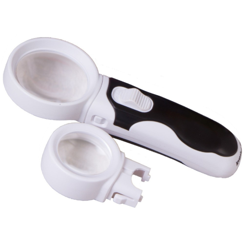 Levenhuk Zeno Multi ML5 nagyító Két nagyító egyben. Cserélhető lencsék és LED világítás. Nagyítás: 5/16x A Levenhuk Zeno Multi nagyítónak jó hasznát veheti olvasáskor, apró dolgok, bútorhibák és fénykép részletek vizsgálatakor. A nagyítóba beépített LED-világítás egyenletesen megvilágítja a vizsgált területet. A sorozat sok modelljéhez cserélhető lencsék tartoznak, így aztán a különféle feladatokhoz nem kell majd más optikai eszközt vásároln