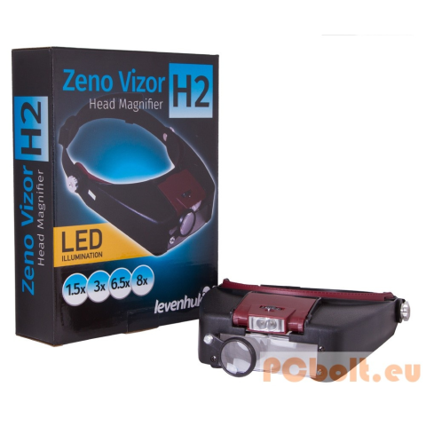 Levenhuk Zeno Vizor H2 fejre szerelhető nagyítóLED-világítás. Nagyítás: 1,5–8x. Plusz lencse.A Levenhuk Zeno Vizor H2 fejre szerelhető nagyítót nagyon precíz, kisméretű elemekkel végzett munkákhoz terveztük. Egyaránt használható professzionális használatra, valamint otthoni tevékenységekhez. A nagyító a rugalmas pántnak köszönhetően kényelmesen rögzül a fejre. 1,5x–8x-os tartományban, négy fix nagyítóerő közül választhat. A nagyítás mértéke könny