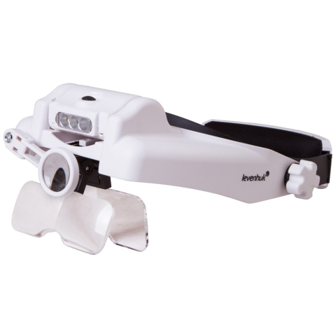 Levenhuk Zeno Vizor H7 fejre rögzíthető nagyító Öt cserélhető lencse és egy lehajtható lencse a jobb szemnél. LED-es megvilágítás. Nagyítás: 1x/1,5x/2x/2,5x/3,5x/8x A Levenhuk Zeno Vizor nagyítók nagyszerű társak a munkában és a hobbitevékenységek végzésekor! Ez a típus különböző nagyítású, cserélhető lencsékkel és LED-es világítással rendelkezik. A praktikus LED-es megvilágítás elemes táplálású, és kikapcsolható, ha nincs rá szüksége. A megvi