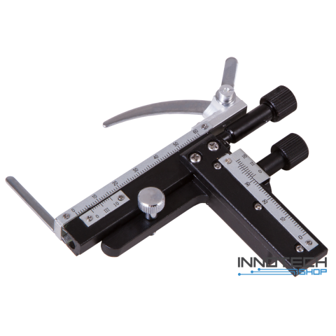 A Levenhuk MS3 mechanikus skálát azért fejlesztettük ki , hogy a mikroszkóp tárgylemezeket mozgatni lehessen a tárgyasztalon és pontosan meg lehessen határozni koordinátáikat. A tárgylemezek az X tengely (balról jobbra) és az Y tengely (előre hátra) mentén mozgathatóak. A mérőskálák és a kiegészítő nónius-skála segít a tárgylemezterület pontos koordinátáinak meghatározásában.