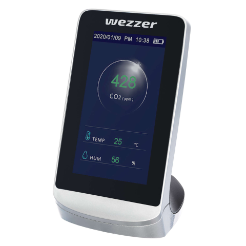 A Levenhuk Wezzer Air MC60 levegőminőség-érzékelő egy kompakt asztali készülék, amely méri a szén-dioxid-koncentrációt, a hőmérsékletet és a páratartalmat. Az adatok egy nagy LCD-képernyőn jelennek meg, egy színkódolt komfortskálával, amely a CO₂-szint értékein alapul. Egyetlen pillantás erre a skálára elegendő ahhoz, hogy lássa, szükség van-e a helyiség kiszellőztetésére. A szén-dioxid határértéké