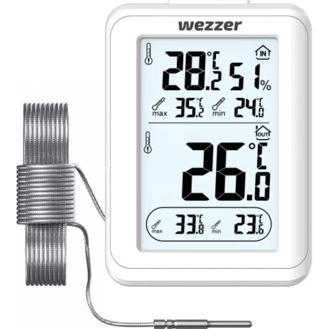 Hőmérő, páratartalom-mérő. Vezetékes hőszondával (3 méteres kábel)