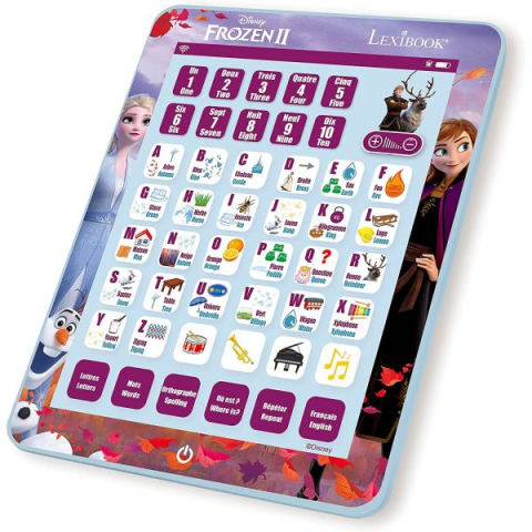 A Lexibook Jégvarázs kétnyelvű (magyar és angol) oktató tabletjével a népszerű mese rajongói játékos formában fejleszthetik készségeiket. A gyerekek megismerkedhetnek a számok világával, a betűkkel, egyes hangszerekkel valamint gyakorolhatják az írást és fejleszthetik logikájukat is. Az eszközön apró képek, feliratok, piktogramok segítik a könnyebb tájékozódást. A hangerő állítható. Méret: kb. 24 x 2 x 35 cm