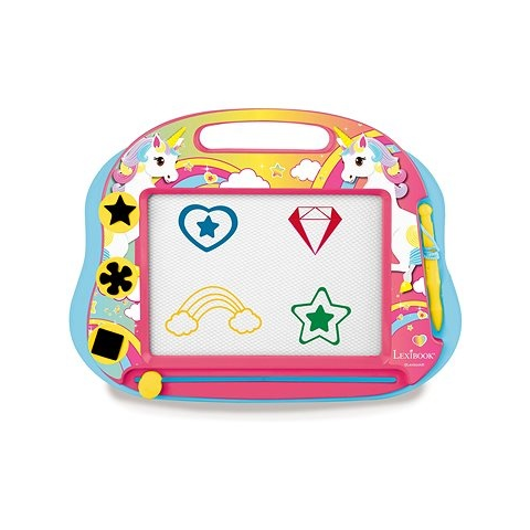 Mágneses tábla gyerek - műanyag, rajzoláshoz, törlés csúszkával, fogantyú a szállításhoz, madzagos érintőtoll, ceruza/toll és pecsétek a csomag része, kék, rózsaszín és sárga kivitel, mérete 23,5 × 32 × 2,5 cm (Ma×Sz×Mé), ajánlott 3 éves kortól A gyerekeid állandóan rajzolni szeretnének, téged pedig elképeszt a papírfogyasztásuk? Szerezd be nekik a Lexibook mágneses rajztáblát egyszarvús mintával. A gyerekek a mellékelt tollal rajzolhatnak a