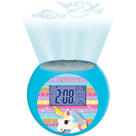 Ébresztőóra - mennyezeti kivetítéssel és rádióval Lexibook kerek gyermek óra, egyedi unikornis témájú kivetítővel. Az óra projektora a mennyezetre vetíti a mintát. A letisztult LCD kijelző praktikusan a dátumot, az aktuális időt, illetve a hét napjai