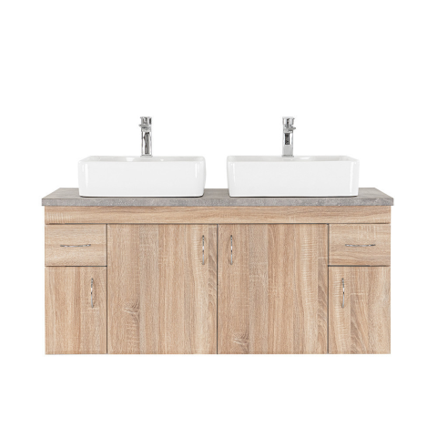 1 kép Leziter Bianco 130 alsó szekrény mosdó nélkül sonoma tölgy beton munkalappal