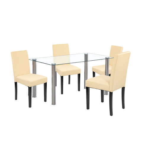 Cadiz 4+1 étkező garnitúra fehér-bézs Leziter Cadiz 4+1 étkezőgarnitúra – modern elegancia és kényelem mindennapokra Te is unod már a billegő asztalokat és a kényelmetlen, nyikorgó székeket, amik elrontják a közös étkezések hangulatát? Legyen szó csal