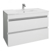 1 kép Leziter Cube 80 alsó fürdőszobabútor kerámia mosdóval 2 fiókos, magasfényű festett fehér