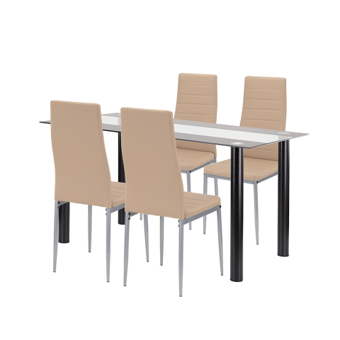 Denton 4+1 étkező garnitúra bézs-szürke Denton 4+1 étkezőgarnitúra – Modern bézs-szürke stílus nagyobb asztallal és kényelmes székekkelAsztal mérete: 140 × 80 × 75 cmAsztallap anyaga: 8 mm vastag edzett üvegAsztallap színe: FüstszürkeAsztal váza: Porsz