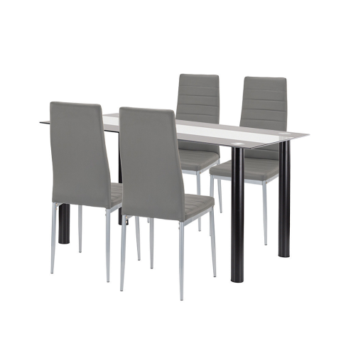 Denton 4+1 étkező garnitúra szürke-szürke Denton 4+1 étkezőgarnitúra – Modern szürke-szürke stílus nagyobb asztallal és kényelmes székekkelAsztal mérete: 140 × 80 × 75 cmAsztallap anyaga: 8 mm vastag edzett üvegAsztallap színe: FüstszürkeAsztal váza: P
