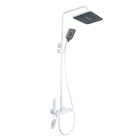 Eliz multifunkciós zuhanyszett – prémium zuhanyélmény modern formábanFőbb termékadatok:Szín: fehérAnyag: sárgaréz, rozsdamentes acél, ABS műanyag, PVC tömlőFunkciók: esőztető zuhany, 3 funkciós kézi zuhany, bidé fej, rejtett kifolyóÁllítható magasság: