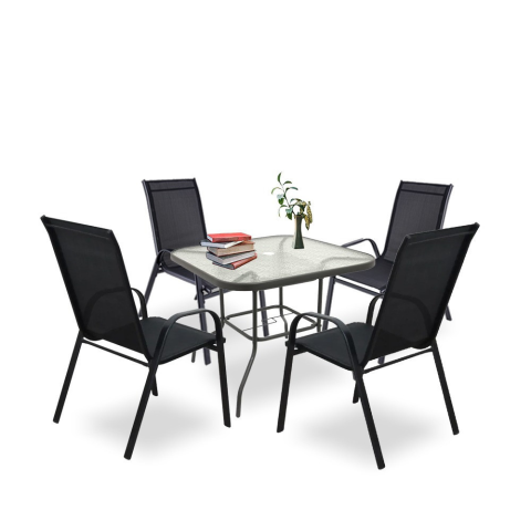 Juba 4+1 kerti bútor garnitúra szett Juba 4+1 kerti bútor garnitúra szettSzék méret63 x 54,5 x 92 cmAsztal anyagFémvázasAsztal méret90 x 90 x 72 cmÜlés anyagtextilénJuba kerti bútor garnitúraA modern kivitelű kerti bútorkészlet egy kerti üveglapos aszt
