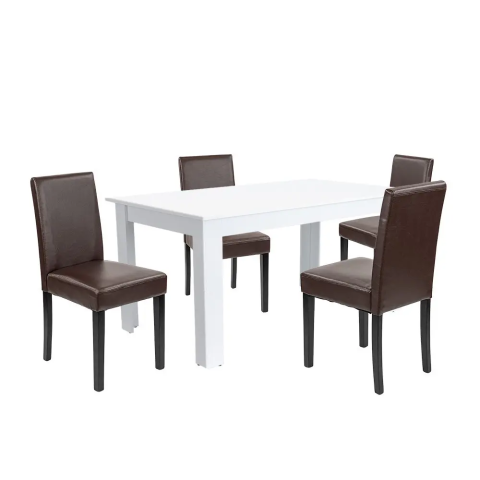 Leon 4+1 étkező garnitúra fehér-barna Leon 4+1 étkező garnitúra fehér-barna Leziter Leon 4+1 étkezőgarnitúra – stílus és kényelem mindennapokra Te is unod már a billegő asztalokat és a kényelmetlen, nyikorgó székeket, amik elrontják a közös étkezések h