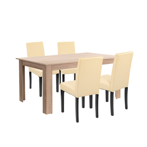Leon 4+1 étkező garnitúra sonoma tölgy-bézs Leon 4+1 étkező garnitúra sonoma tölgy-bézs Leziter Leon 4+1 étkezőgarnitúra – stílus és kényelem mindennapokra Te is unod már a billegő asztalokat és a kényelmetlen, nyikorgó székeket, amik elrontják a közös