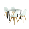 Merlo 4+1 étkező garnitúra fehér Merlo 4+1 Étkező Garnitúra fehérElegancia és kényelem harmóniája a Merlo étkezőgarnitúrávalJellemzőRiona ÉtkezőasztalSilla ÉtkezőszékDesignfekete színű, porszórással kezelt acél váz, edzett üveg asztallapfehér színű pré