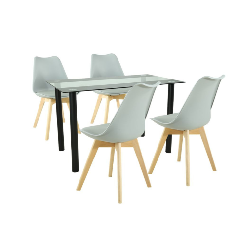 Merlo 4+1 étkező garnitúra szürke Merlo 4+1 Étkező Garnitúra szürkeElegancia és kényelem harmóniája a Merlo étkezőgarnitúrávalJellemzőRiona ÉtkezőasztalSilla ÉtkezőszékDesignfekete színű, porszórással kezelt acél váz, edzett üveg asztallapszürke színű