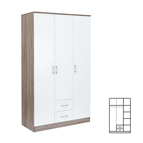 Teljes Leziter Miami gardróbszekrény 120x205 cm fehér-yorki tölgy termékleírás