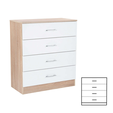 Teljes Leziter Miami komód 4 fiókos 80x92 cm fehér-sonoma tölgy termékleírás