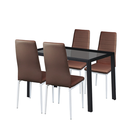 Nicole 4+1 étkező garnitúra barna Nicole 4+1 étkezőgarnitúra – Letisztult barna elegancia edzett üvegasztallal és modern étkezőszékekkelAsztal mérete: 120 × 70 × 74 cmAsztallap anyaga: 8 mm vastag, hőkezelt, edzett füstszürke üvegAsztallap színe: elegá