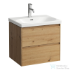 Leziter Porto 80 komplett – sonoma tölgy–rauna szil  Szín: Sonoma tölgy korpusz, rauna szil front Szélesség: 80 cm Alsó szekrény méret: 80 × 55 × 46 cm Felső szekrény méret: 80 × 67 × 20 cm Mosdó: Fehér, mélymedencés kerámia, egy csaptelephellyel Táro...