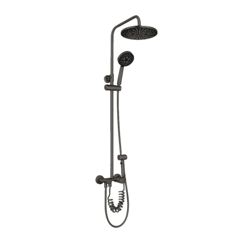 Leziter Rivo zuhanyszett – elegáns, fekete zuhanyoszlop bidével, modern otthonokbaTermékjellemzők:Terméktípus: zuhanyoszlop bidévelMérete: 20 cm átmérőjű felső zuhanyfejAnyagösszetétel:– Sárgaréz csaptelep (brass faucet) a megbízhatóságért és vízkőállóságért– Cink ötvözetű kar (zinc handle) a precíz, kényelmes vezérléshez– Rozsdamentes acél kifolyó (stainless steel spout) a tartós és higiénikus vízáramlásért– 201 rozsdamentes acél cső az ex