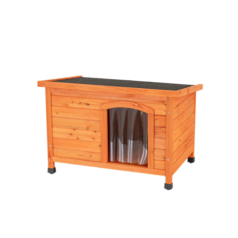 Smiley Basic kutyaház LMéret: 66 × 70,5 × 104 cmBejárat mérete: 32 × 45 cmAnyag: lakkozott nyársfenyőfa – időjárásálló felületkezelésselTető: homokszórt bitumenes kátránypapír – védelem eső és nedvesség ellenAjtó: lamellás, műanyag – csökkenti a huzat