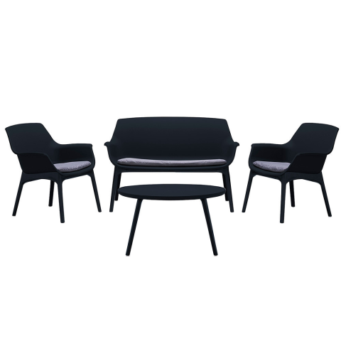 Tampa 4 személyes kerti bútor garnitúra - grafitKényelmes, modern és időjárásálló – A kerti pihenés új szintje!Nincs is rosszabb annál, mint amikor egy hosszú nap után végre leülnél pihenni a kertben, és a szék kemény, kényelmetlen vagy épp billeg. A