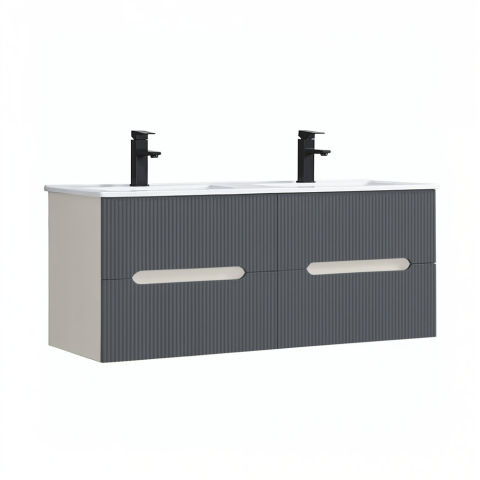 1 kép Leziter Trent 120 alsó fürdőszobabútor kerámia mosdóval (2 fiókos) fehér-antracit szürke
