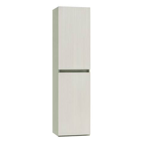 Trent függesztett oldal szekrény Olivazöld-FehérSzélesség: 35 cmMélység: 30 cmMagasság: 140 cmFront: bordázottKorpus: ellenálló, nedvességtűrő laminált lapKivitel: fali függesztésNyitás: rejtett, integrált fogantyúBelső elrendezés: 4 polcosFogantyú: r