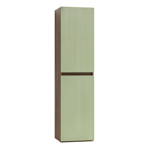 Trent függesztett oldal szekrény Sunset tölgy-Világos zöldSzélesség: 35 cmMélység: 30 cmMagasság: 140 cmFront: bordázottKorpus: ellenálló, nedvességtűrő laminált lapKivitel: fali függesztésNyitás: rejtett, integrált fogantyúBelső elrendezés: 4 polcosF