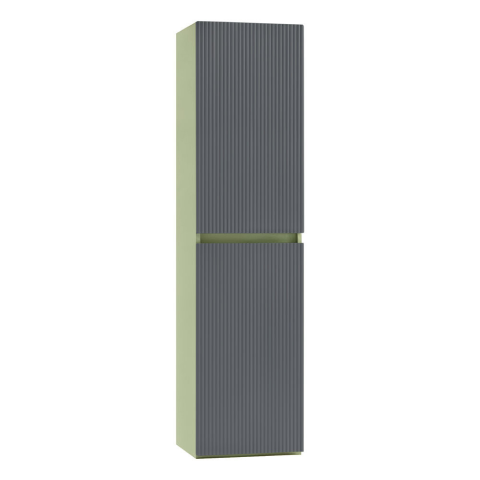Trent függesztett oldal szekrény Világos zöld-Antracit szürkeSzélesség: 35 cmMélység: 30 cmMagasság: 140 cmFront: bordázottKorpus: ellenálló, nedvességtűrő laminált lapKivitel: fali függesztésNyitás: rejtett, integrált fogantyúBelső elrendezés: 4 polcosFogantyú: rejtett, vízszintesSzín: Világos zöld-Antracit szürkeA Leziter Trent függesztett oldal szekrény letisztult, modern megjelenésével tökéletes kiegészítője bármely Trent fürdőszobabútornak –