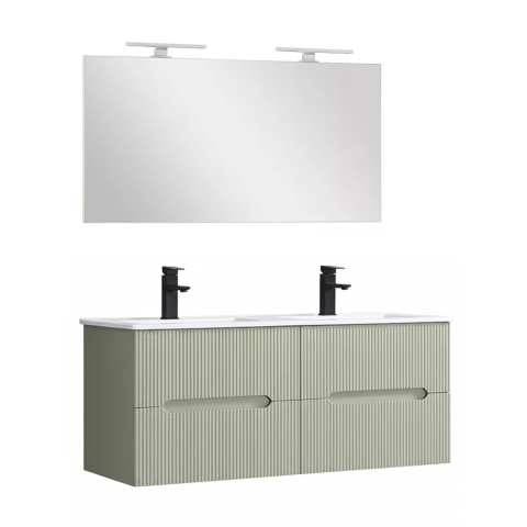 Trent 120 komplett Leziter Trent Fürdőszobabútor 120 cm kerámia mosdóval (4 fiókos) tükörrel Zöld - ZöldBútor:Szélesség: 120 cmMélység: 45 cmMagasság: 48 cmKivitel: fali függesztésFront: 18 mm MDF, PVC fóliávalKorpus: 15 mm MDF, melamin borítássalNyitá