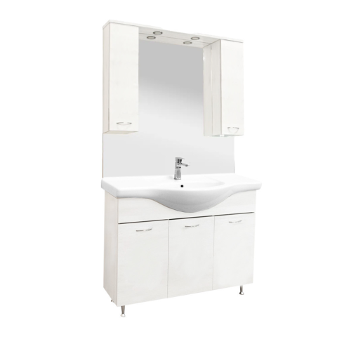 Vanessa 105 Fürdőszobabútor szett: Stílusos és tágas fürdőszoba megoldás 🛀 Ez a komplett fürdőszobabútor szett tökéletes választás kisebb fürdőszobákba is, például panel lakásokba, hiszen kevés helyet foglal, mégis tágas tárolóhelyet biztosít. A Son...