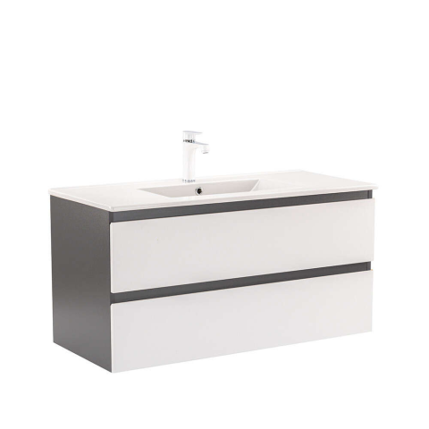 Vario Forte 100 Fürdőszoba Alsószekrény Mosdóval - Elegáns és Praktikus Megoldás Fürdőszobájába 🛁 A Vario Forte 100 alsószekrény mosdóval tökéletes választás, ha modern és funkcionális fürdőszobabútort keres. Az antracit korpusz és fehér front kombin...