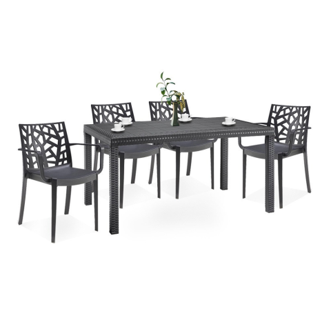 Violina 4+1 karfás kerti bútor garnitúra szett Termékjellemzők Ez az egyedi megjelenésű kerti bútor szett megfelelő kényelmet nyújthat étkezésekhez, kávézásokhoz, pihenéshez és akár olvasáshoz is mindenki számára, aki szereti a szabad levegőn tölteni a