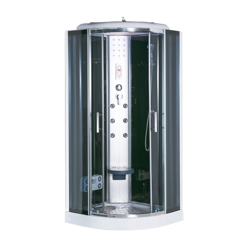Vital Black 90x90 cm íves hidromasszázs zuhanykabin TermékjellemzőkProfilerősített matt krómZuhanykabin méret90x90x205cm*Biztonságiüveg 5 mmÜlőke teherbírása:70 kgTermékleírásA Vital Black hidromasszázs zuhanykabin modern hangulatot teremt a fürdőszobá