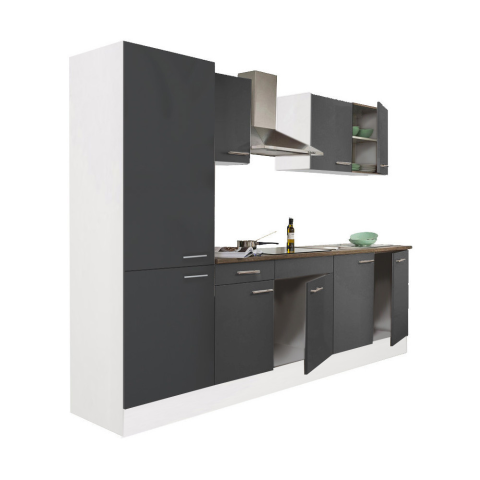Yorki 270 konyhablokk fehér korpusz,selyemfényű antracit fronttal. A tökéletes konyha megteremtője! Minőségi hazai gyártású moduláris konyhabútor, mely kielégíti bármely kedves vásárló igényét. Laminált 16 mm-es bútorlapból készülő korpusz, fehér szín