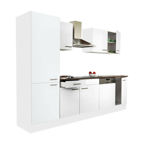 Leziter Yorki 280 konyhablokk fehér korpusz,selyemfényű fehér fronttal polcos szekrénnyel bútor termékleírás