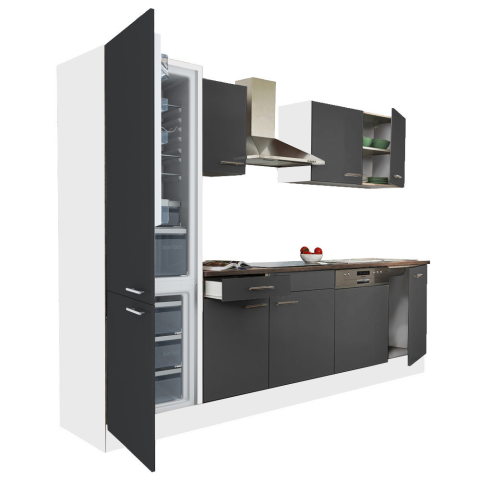 Yorki 280 konyhablokk fehér korpusz,selyemfényű antracit fronttal. A tökéletes konyha megteremtője! Minőségi hazai gyártású moduláris konyhabútor, mely kielégíti bármely kedves vásárló igényét. Laminált 16 mm-es bútorlapból készülő korpusz, fehér szín