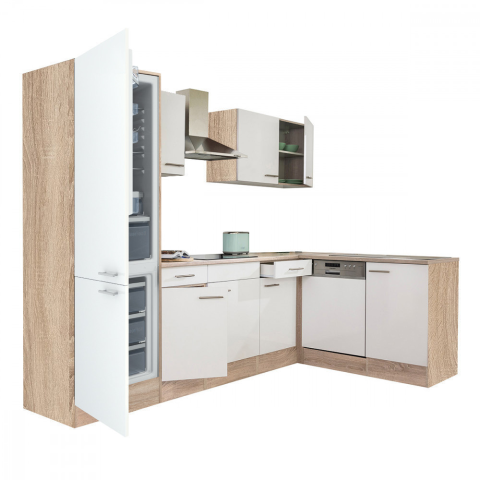 Yorki 280 sarok konyhabútor alulfagyasztós hűtős kivitelben Yorki 280 sarok konyhablokk sonoma tölgy korpusz, selyemfényű fehér fronttal. A tökéletes konyha megteremtője! Minőségi hazai gyártású moduláris konyhabútor, mely kielégíti bármely kedves vásá