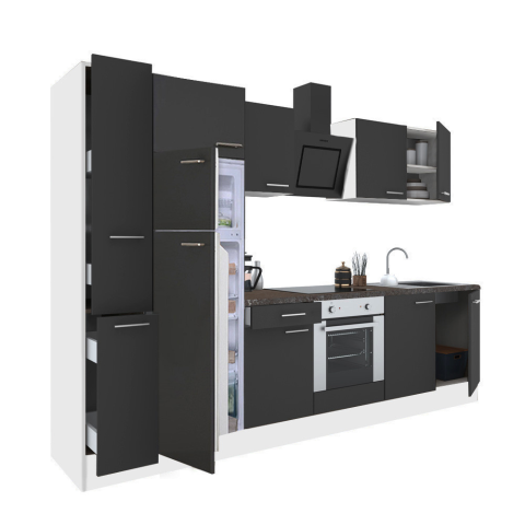 Yorki 300 konyhabútor alsó sütős, felülfagyasztós hűtős kivitelben Yorki 300 konyhablokk fehér korpusz,selyemfényű antracit fronttal. A tökéletes konyha megteremtője! Minőségi hazai gyártású moduláris konyhabútor, mely kielégíti bármely kedves vásárló