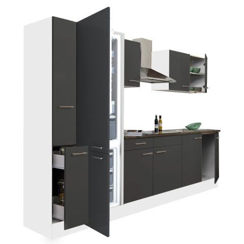 Yorki 300 konyhabútor alulfagyasztós hűtős kivitelben Yorki 300 konyhablokk fehér korpusz,selyemfényű antracit fronttal. A tökéletes konyha megteremtője! Minőségi hazai gyártású moduláris konyhabútor, mely kielégíti bármely kedves vásárló igényét. Lami