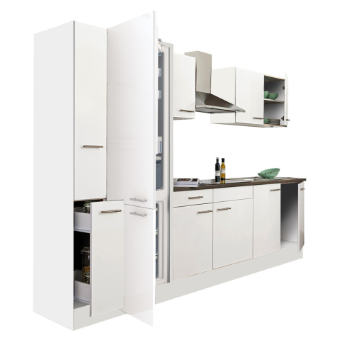 Yorki 300 konyhabútor alulfagyasztós hűtős kivitelben Yorki 300 konyhablokk fehér korpusz,selyemfényű fehér fronttal. A tökéletes konyha megteremtője! Minőségi hazai gyártású moduláris konyhabútor, mely kielégíti bármely kedves vásárló igényét. Laminál